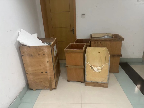 问题描述:废弃木箱堆积公共区域,已通知学生清理